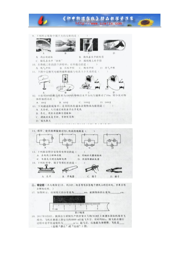 - 下一份试卷:湖南省衡阳市2017年中考物理试题(扫描版,含答案)