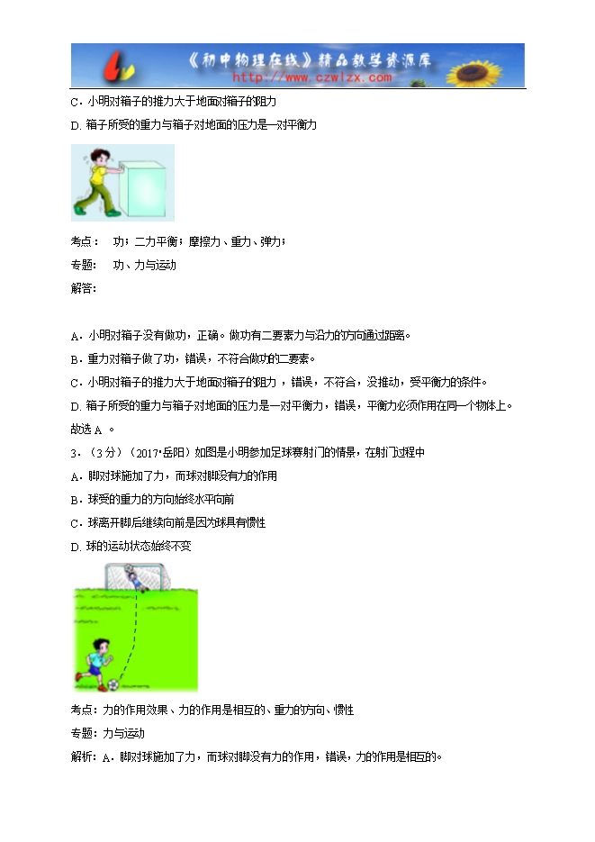 2.(3分)(2017?岳阳)如图,小明沿水平地面推箱子,但箱子没有移动,此过程