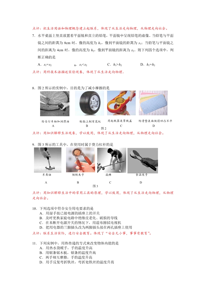 【内容简介】北京市2017年中考物理试题(pdf版,无答案)