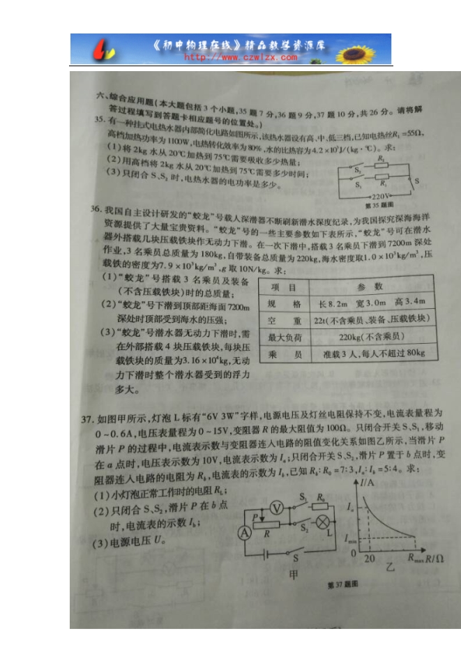 【内容简介】贵州省遵义市2017年中考理综(物理部分)试题(图文版,无答案)