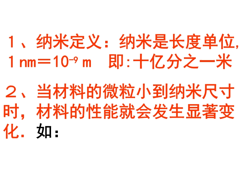 课件展示了纳米材料、超导材料、形状记忆合金、隐性材料的特点及应用,重在让学生通过示意图及实物图片的观察分析总结达到掌握知识。课件选取图片效果清晰度高,运用在课堂教学中可提高学生的学习兴趣,可辅助突破教学难点,课件用Powerpint制作,也方便老师们上课修改,是一个不错的上课课件。