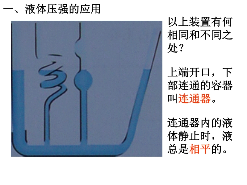 【内容简介】沪科版八年级8.2节《科学探究:液体的压强》新课标ppt课件(第2课时),教师自已做的课件,符合新课标要求。结合了几个flash小动画,很实用的一个课件。