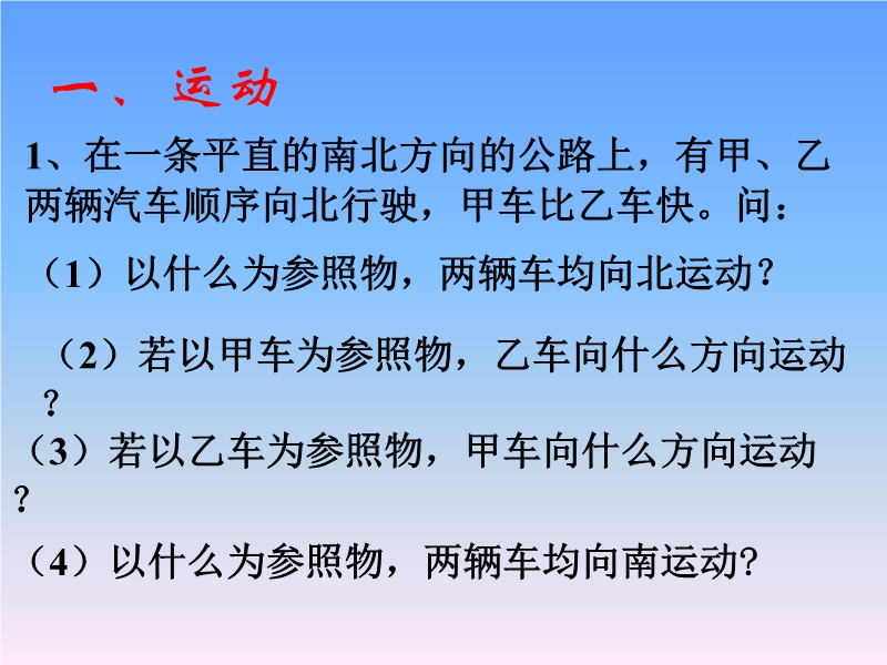 【内容简介】本课件复习的内容主要有运动的概念、比较运动的快慢、速度概念及计算、力的作用效果、牛顿第一定律、惯性、力的平衡等。教学过程主要以问题或习题的形式进行,习题有基础题和提高题,可巩固基础知识,提高基本技能,培养学生的应用能力。