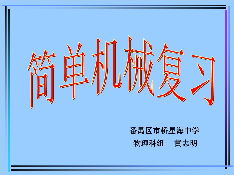 【内容简介】本课件主要引导学生复习了有关杠杆的基本概念、杠杆的平衡条件、杠杆的分类和应用、各种滑轮的特点及滑轮组的应用等。教学设计能将基础知识和应用相结合,可提高学生解决问题的能力 。