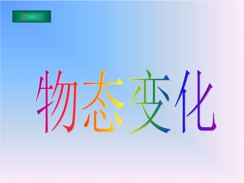 【内容简介】本课件以人教版教材为基础制作,引导学生复习了物态变化这一章的内容,共有13张幻灯片。教学设计以节为单元进行复习,第节内容都列出了具体的知识点,主要以填空的形式出现。另外每节重点补充了典型的习题,以练习为主,引导学生掌握知识并应用知识。