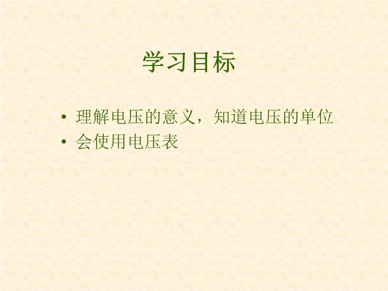 【内容简介】本课件以人教版新教材为基础制作,共由15张幻灯片组成,并插入了两个flash动画。电压是初中物理教学中的重点和难点,学生难以理解。为了帮助学生理解,课件中以flash动画模拟演示了水泵产生水压使水流动形成水流的情景,进一步把电路和水路相类比,引导学生认识和理解由于电源的作用产生电压使电荷作定向移动形成电流。很好地解决了难点,也生动、形象。课件还引导学生认识和学习了电压表,课件用flash动画展示了电压表的构造、电压表的读数方法和电压表的使用等。