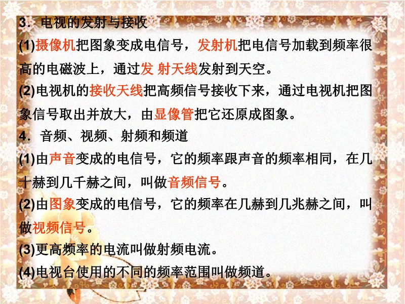 【内容简介】本课件以中考复习为宗旨制作,共有16张幻灯片。主要引导学生复习了电话的组成及工作原理、电磁波的传播及特点、电视的发射和接收、电磁波的应用、现代通信技术等。课件主要分为两个模块:一是考点指导,主要复习基本知识;二是备考训练,主要精选了典型的习题,可供课堂练习使用。