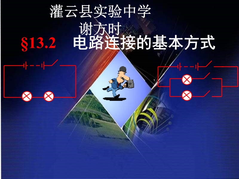 【内容简介】本课件以苏科版新教材第十三章第二节为基础制作,共有42张幻灯片,设计主动、形象,重点突出,交互性好。课件引导学生认识了串联电路和并联电路,并且引导学生学会画相关的电路图,学会连接实物图。课件还用形象的动画向学生展示了串联电路和并联电路的特点,课件中有巩固练习,可供教学时参考使用。