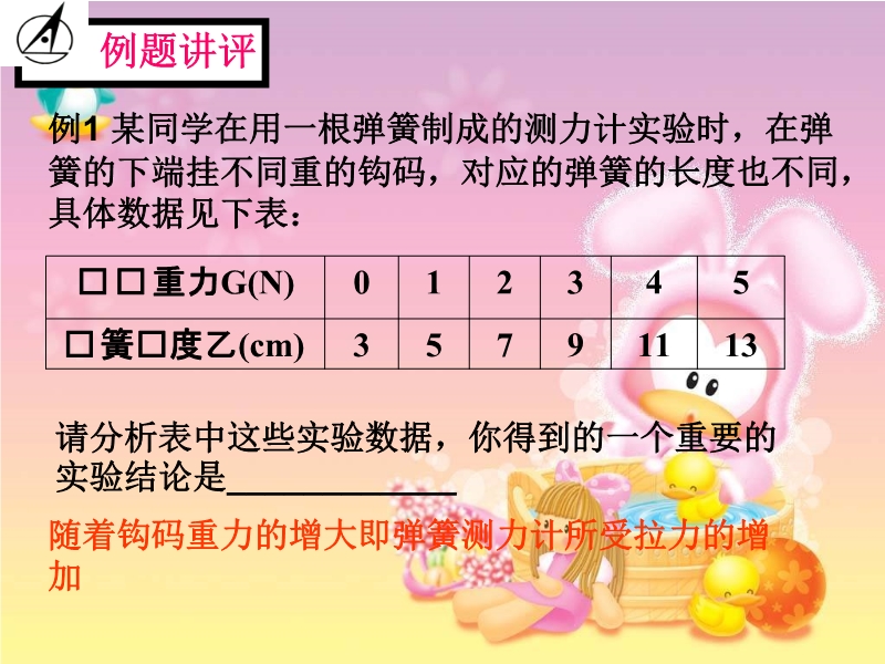 【内容简介】本课件以沪科版新教材第六章为基础制作,共有34张幻灯片。主要引导学生复习了力的概念、力的三要素、力的作用效果、力的示意图、弹力的概念、弹簧测力计的原理及使用方法、重力的概念方向及意义、重力与质量的关系、有关摩擦的知识等。课件精选了大量的例题和习题,主要以练习为主,提高学生分析问题和解决问题的能力,发展学生的智能。