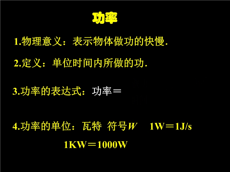 【内容简介】本课件适用于九年级物理第十五章第三节《功率》的教学,共15张幻灯片。课件将抽象的内容进行形象化,具体化,让学生深刻理解功率的意义\概念\单位\公式以及功率的计算。