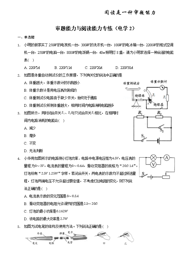 - 2072025-2026学年苏科版物理九年级上册同步练习:第十四章 欧姆定律 小专题3 欧姆定律在实际生…