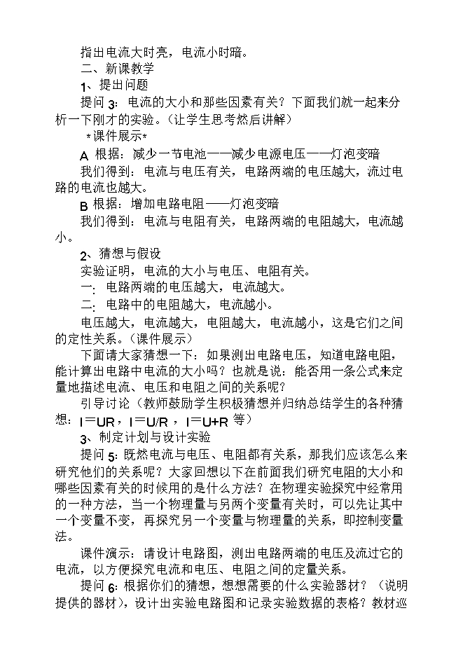 【内容简介】课件共15张幻灯片和1个flash组成,课件以“思考:有什么方法让电路中的灯泡变暗些呢?”引发学生思考,并逐步深入地引导学生探究“欧姆定律”,最后还引用5道经典试题提高学生运用知识的能力,课件简洁,图片清晰。