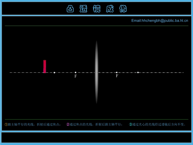 【内容简介】课件根据《透镜》一节内容制作,共14张幻灯片。内容包括:两种透镜的三条光线, 凸透镜成像、凹透镜成像和练习。课件的特点:运用gif动画展示了透镜成像的特点,课件在ppt制作方面的技术运用有较大的创新和突破,供同行交流学习