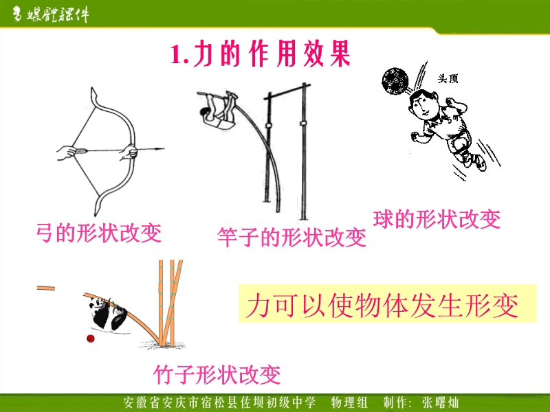 【内容简介】本课件以人教版第十二章第四节《力》为基础制作,共有34张幻灯片,课件引导学生通过广泛的生活实例总结了力的概念,研究了力的作用效果,认识了施力物体、受力物体的概念,以具体的实例引导学生认识了力的作用是相互的。用图片展示了生活中涉及到的力的知识,能让学生更深入地理解力。