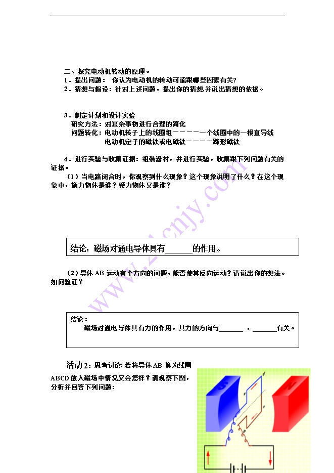 - 8082021秋人教版九年级物理全一册导学案:20.4 电动机(含答案)