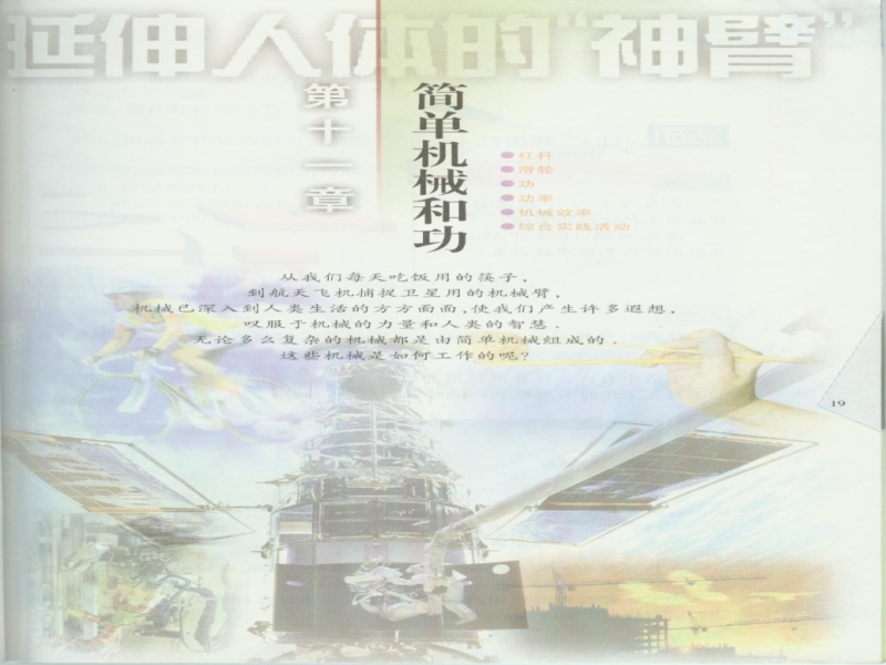 【内容简介】本课件以苏科版新教材第十一章为基础制作,供本章复习用,共由28张幻灯片组成。内容主要包括杠杆、定滑轮和动滑轮、滑轮组、功和功率、机械效率等。课件以练习为依托组织了学生对本章知识的复习。