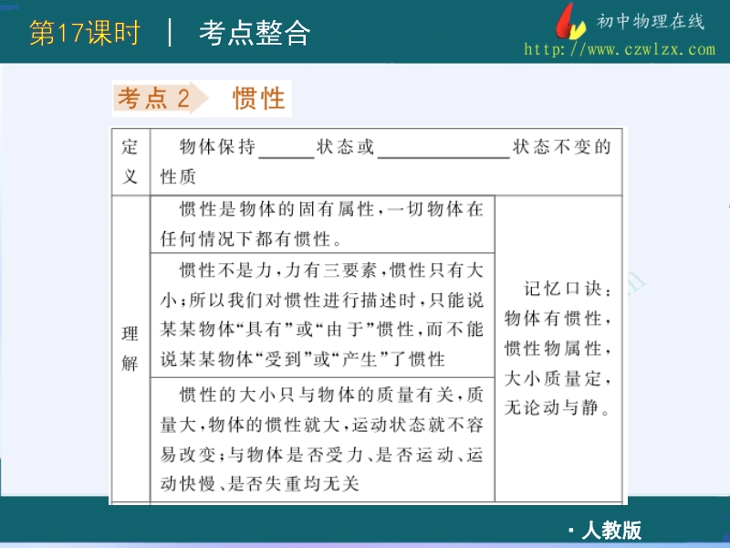 2011届人教版中考物理复习方案《牛顿第一定律 二力平衡》ppt课件