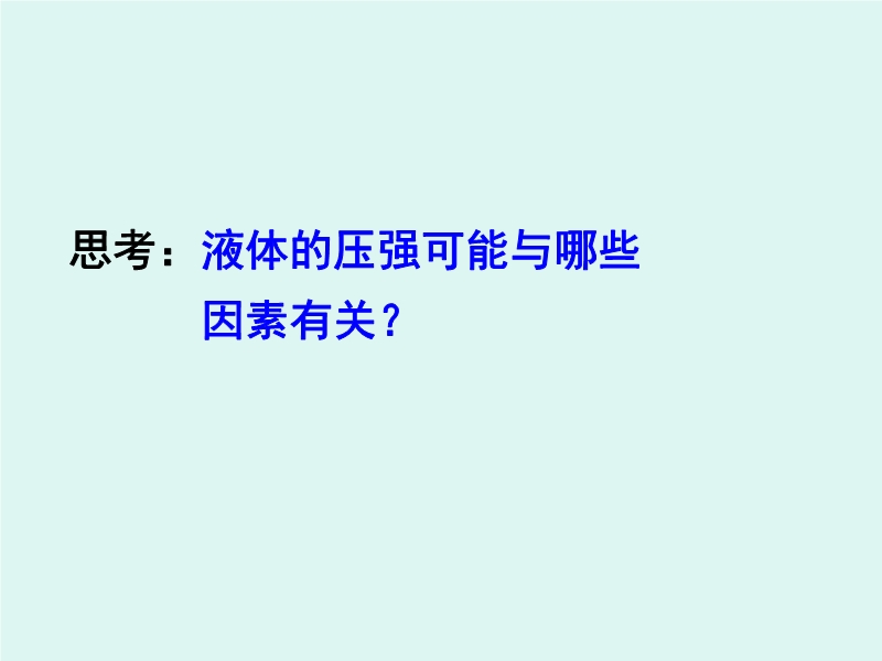 【内容简介】本课件以沪科版新教材第八章第二节为基础制作,共有31张幻灯片。课件引导学生讨论了液体的压强,并引导学生通过实验探究了液体压强的特点,探究了液体的压强可能与哪些因素有关,从理论上推导了液体压强的计算方法,课件精选了典型的习题,可供课堂巩固练习使用。本课件可供本节教学第一课时使用。