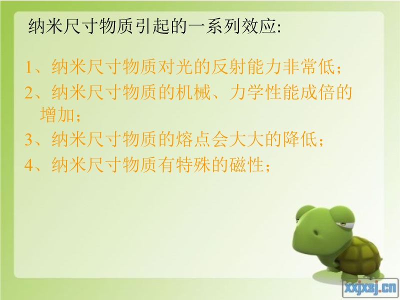 【内容简介】本课件以北师大版新教材第二章第四节为基础制作,共有15张幻灯片。课件引导学生认识了纳料材料,展示了它的一系列的特殊的效应。引导学生认识了绿色能源的重要性,并展示了一些绿色能源,展示了电池的优点,讨论了太阳能的重要作用。课件还引导学生认识了记忆合金的作用及应用。本课件可供教学“新材料”时参考使用。