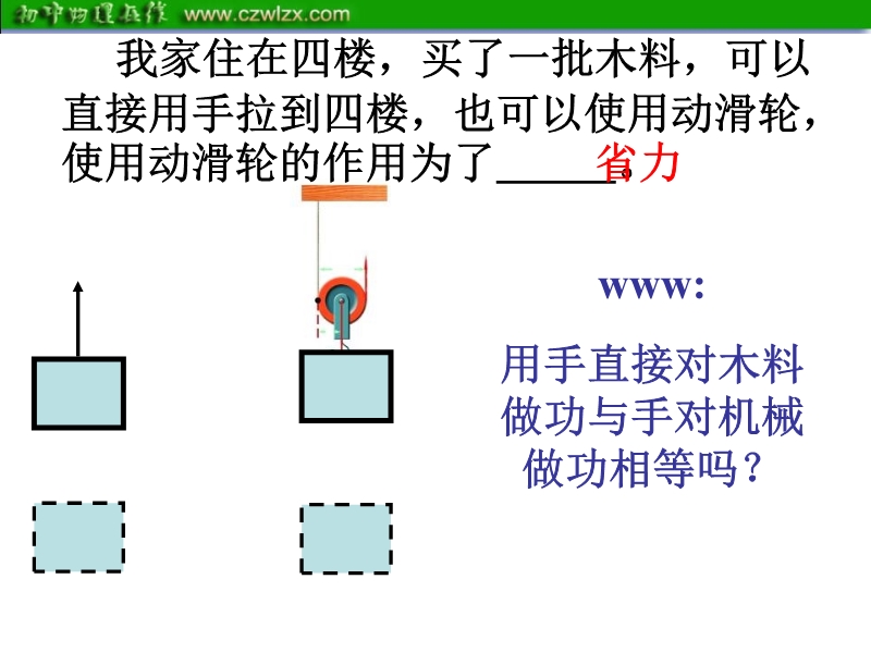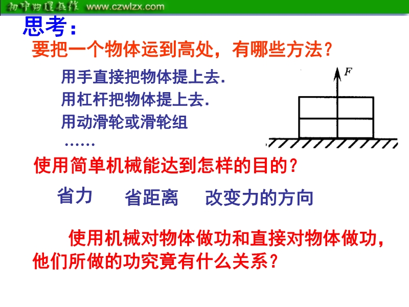 【内容简介】本课件以教科版新教材第十一章第五节为基础制作,共有34张幻灯片。课件引导学生认识了有用功、额外功和总功的概念,学习了机械效率的概念,展示了生活和生产中与机械效率有关的知识等 。