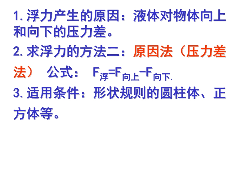 【内容简介】本课件以沪粤版新教材第九章第二节为基础制作,共有25张幻灯片,并插入了一个flash动画。课件在上节的基础上,进一步引导学生深入地研究了浮力的大小问题,讨论了压力差法求浮力,展示了阿基米德原理的探究过程,并用flash动画作了模拟演示,过程详细、具体、生动,课件还精选了典型的例题和习题,可供教学“探究浮力的大小”时参考使用。