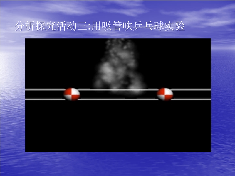 【内容简介】本课件以北师大版新教材第八章第六节为基础制作,共有20张幻灯片。课件首先引导通过小实验体验了流体压强与流速的关系,总结了结论,实验设计简单、易操作,能提高学生的动手能力。然后引导学生讨论了飞机为什么能上天,总结了升力产生的原因,并展示了它的应用等。本课件可供教学“流体压强”时参考使用。