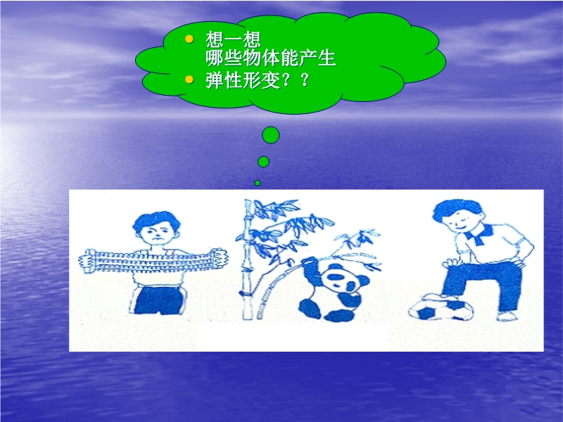【内容简介】本课件以沪科版新教材第六章第三节《6.3弹力与弹簧测力计》为基础制作,共有18张幻灯片。课件引导学生认识了弹性形变、弹力,引导学生讨论了弹簧测力计的原理,展示了常见的弹簧测力计,引导学生认识了它的结构,讨论了弹簧测力计的使用方法等。本课件可供教学“弹力、弹簧测力计”时参考使用。