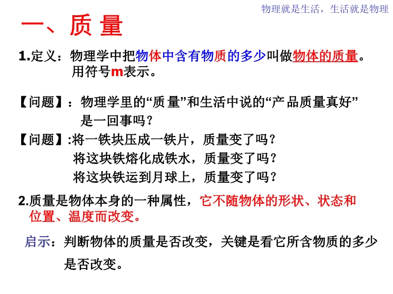 新人教版《6.1质量》ppt课件(免费)
