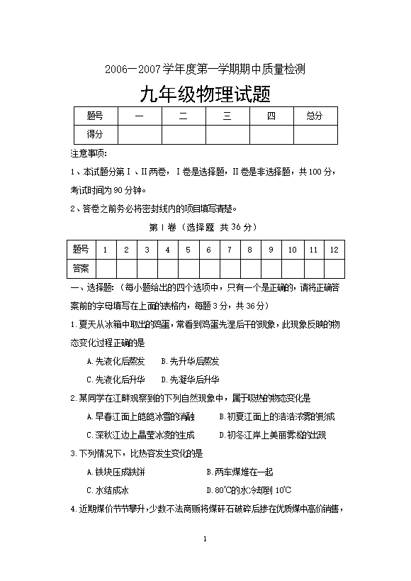 - 上一份试卷:2005~2006学年第一学期九年级物理期中测试卷(沪科版)