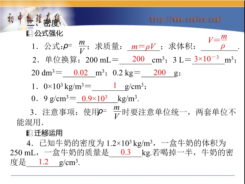 2013年中考物理二轮专题复习:《中考考前冲刺:基本公式和基本计算》ppt课件