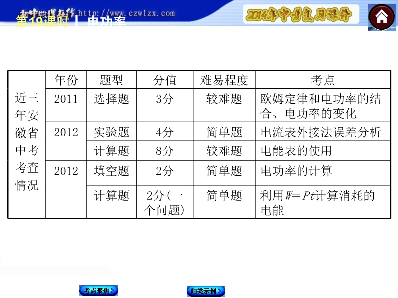 【最新—中考必备】2014中考复习方案课件:第19课时 电功率(皖考解读+考点聚焦+皖考探究)