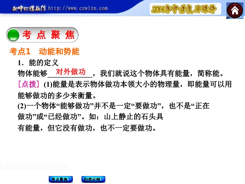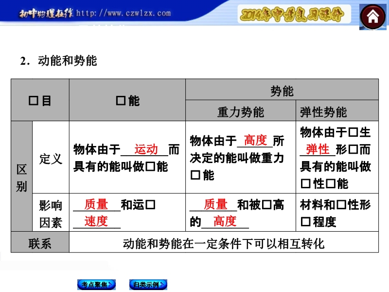 2014年中考考点聚焦+归类示例《第14课时 机械能》ppt课件(免费)