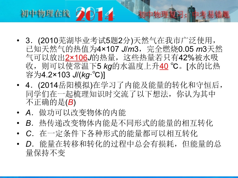 2014年人教版总复习(知识梳理+真题体验+考点透析+实验探究+易错档案):15 内能(2)(免费)