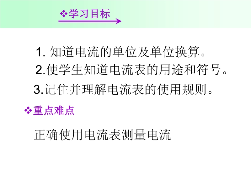 【内容简介】人教版:《15.4电流的测量》ppt+flash课件,共有23张幻灯片,并插入了4个flash动画。课件引导学生认识了电流的定义及电流的意义、单位,了解了常见电流值,展示了电流表,重点让学生学习了电流表的使用方法,同时flash模拟演示。