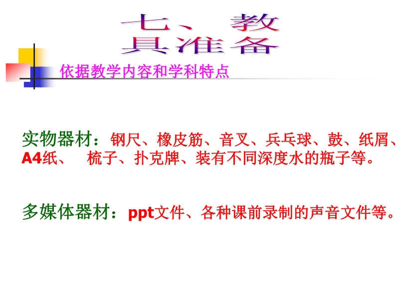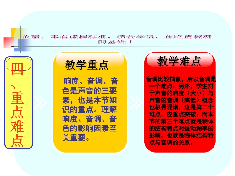 【内容简介】教科版:《3.2乐音的三个特征》PPT说课稿,共有23张幻灯片,是本节的说课课件。课件主要讲述了本节教材内容要点、教材的地位和作用、教学目标、教学的重点与难点、教学方法及学法,详细设计了本节的教学程序。
