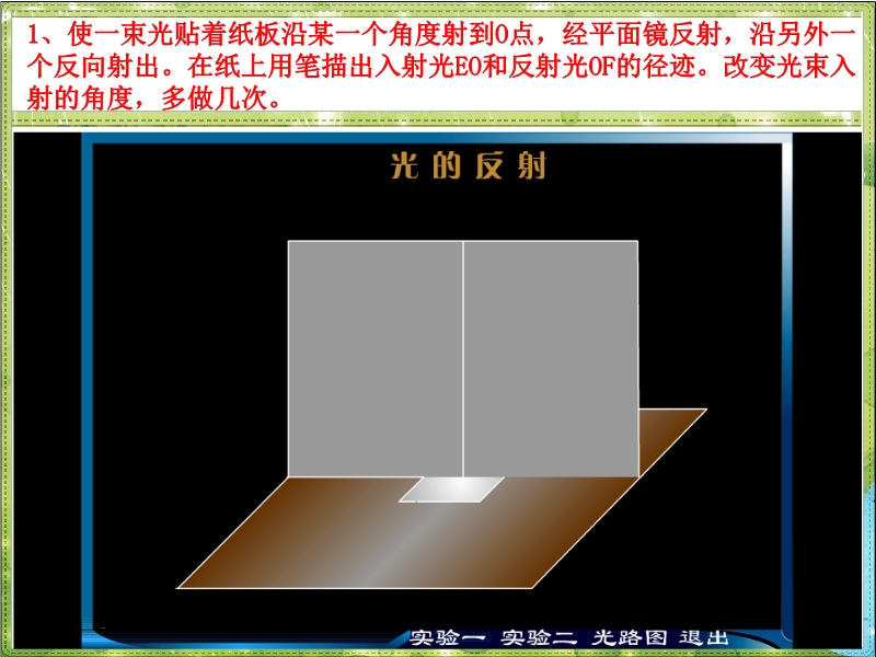 【内容简介】人教版:《4.2光的反射》ppt课件,共有26张幻灯片,并插入了5个FLASH文件。课件向学生展示了生活中的反射现象,引导学生探究了光的反射规律,并用动画演示了这个实验,总结了光的反射定律,讨论了两种反射的异同点同时flash动画演示,教学过程中能紧密联系生活实际,将物理与生活相结合。