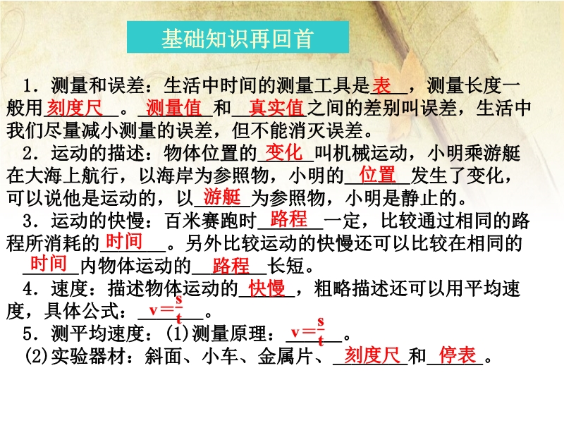 2015年人教版单元复习课件:《第一章 机械运动》ppt课件(免费)