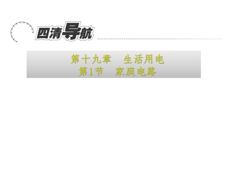 【内容简介】人教版:四清导航同步习题精讲课件(日日清):《19.1生活用电》ppt课件,课件共10张幻灯片,课件从结构上按照中考试题设计有选择题、填空题、实验和计算题,按照教材内容 结合考纲,精选近几年来16道左右的中考试题(试题提供了答案),培养学生运用知识的能力,注重知识的整合,教师可以将ppt内容转化成word形式,制成试卷。