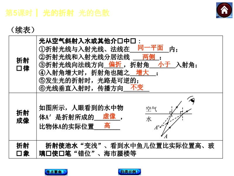 2015届人教版中考复习方案:《第5课时 光的折射 光的色散》ppt课件(免费)