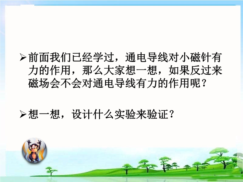 【内容简介】人教版《20.4电动机》ppt+flash课件,共有31张幻灯片,并插入了4个flash动画。课件首先回顾了奥特实验,认识了电流能够产生磁场,然后引导学生探究了磁场对电流有力的作用,同时动画演示了原理,最后分析了电动机的结构和原理,最后用flash动画展示了直流电动机的工作原理,动画制作生动、形象、具体,分析详细,能更好地解决教学中的难点。