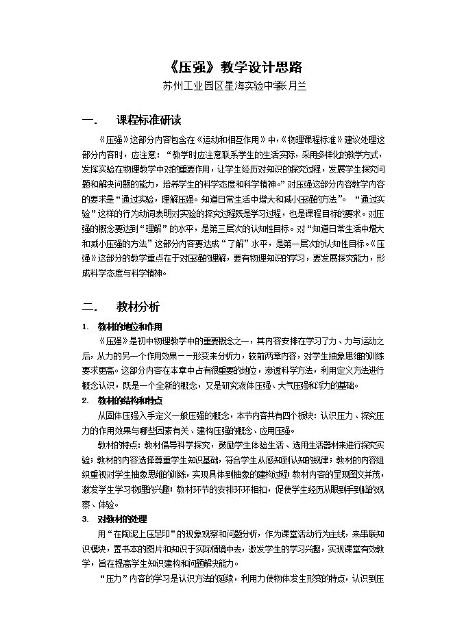 苏州工业园区星海实验中学:苏科版《10.1压强》ppt+教案+教学设计思路课件