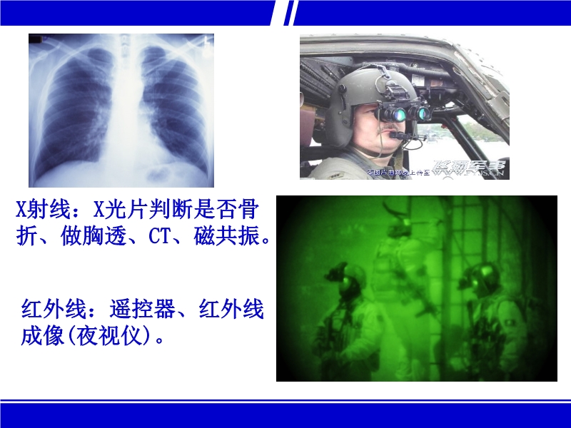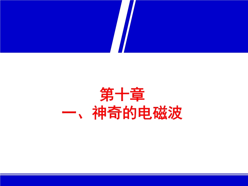 张幻灯片。课件分三部分:一、神奇的电磁波——通过水波对比引入电磁波,让学生了解波长、频率、波速三者之间的关系;二、电磁波的应用——从电磁波信息特征和电磁波能量特征两个方面介绍电磁波的应用