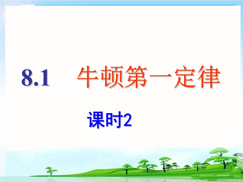 【内容简介】人教版:《8.1牛顿第一定律-惯性》ppt+视频课件,共有28张幻灯片。内嵌1个视频,课件引导复习了牛顿第一定律,引导学生理解惯性的意义,认识了牛顿第一定律和惯性的区别。利用惯性知识解释一些生活中的常见现象。