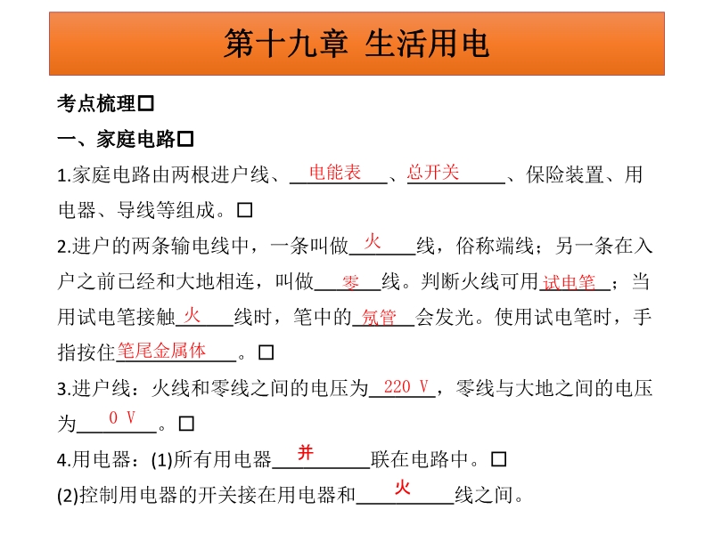 广东省2015中考物理冲刺复习课件:《第19章+生活用电》PPT课件