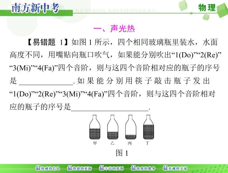 【内容简介】2015南方新中考:《经典错题集》PPT课件,课件有43张幻灯片,课件按照:声光热、、电学、力学分类列举2014年中考试题学生错题,通过课件展示了错误的原因、正确答案和指点迷津。