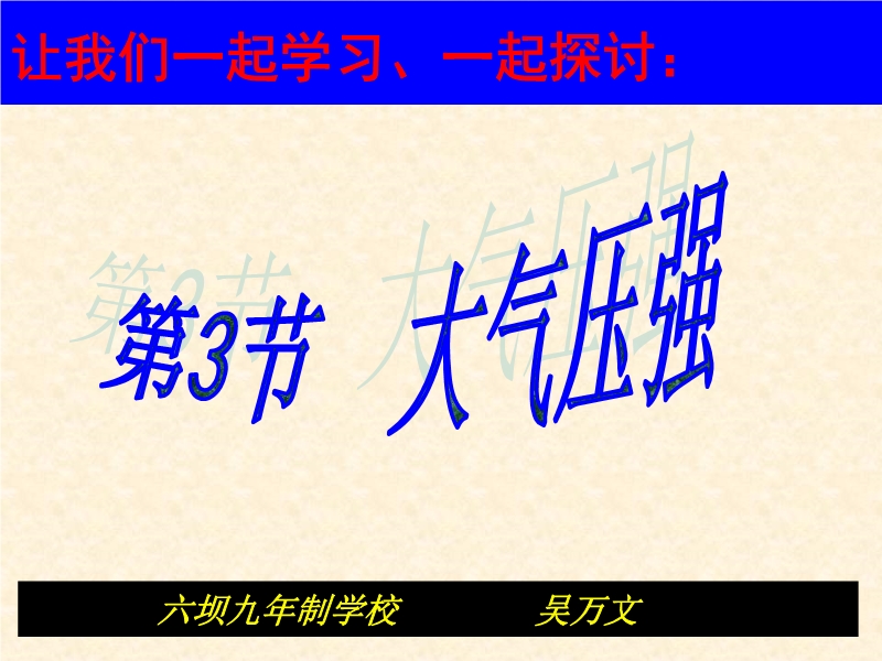 - 下一份课件:六坝九年制学校:人教版《9.3大气压强》PPT说课课件