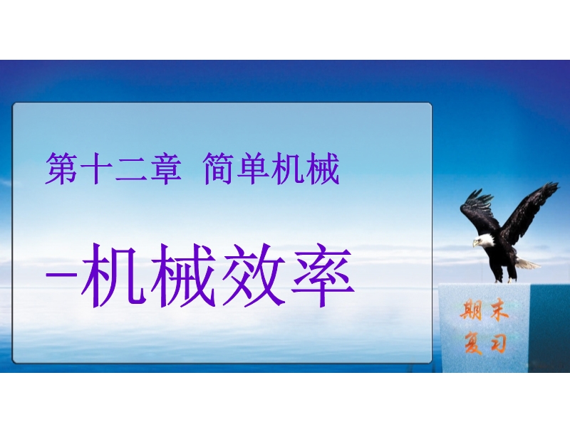 【内容简介】人教版:《第十二章 简单机械-机械效率》PPT复习课件,课件共20张ppt幻灯片,课件组织学生复习本节基础知识点,课件主要通过填空形式再现基础知识点,同时通过点拨形式对该知识点的难、易错指导、辨析等。2.归类实例,课件总结中考考查知识点的类型,通过2014年中考试题的展示,解析和点评,总结方法,提高学生能力,课件最后通过方法集锦,突出重点、突破难点。