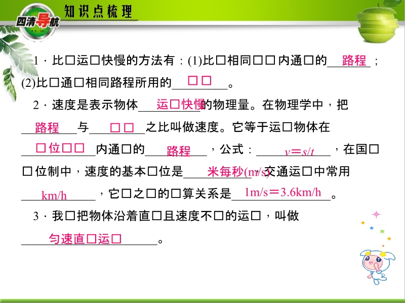 四清导航课件:人教版《1.3运动的快慢》知识点训练ppt课件