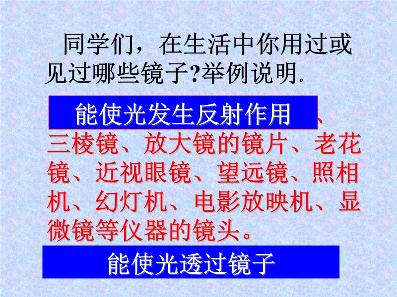 【内容简介】人教版:《5.1透镜》ppt+视频课件,共有39张幻灯片,课件主要引导学生认识了两种透镜及它们的重要应用,引导学生探究了两种透镜对光的作用。课件制作详细、形象、生动!