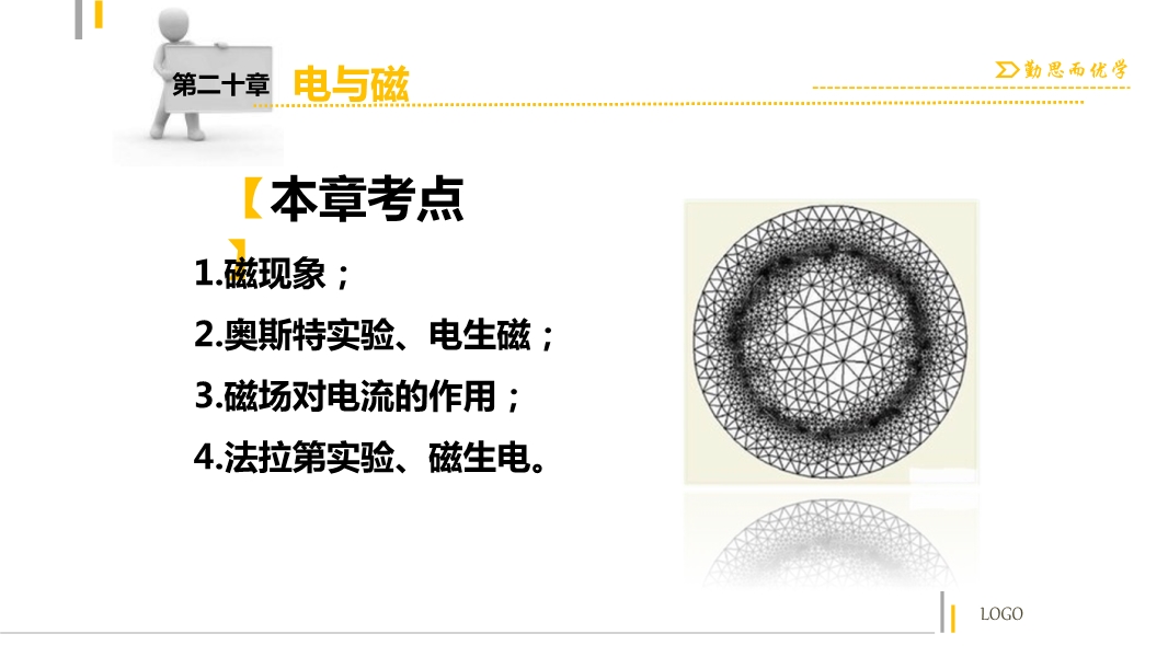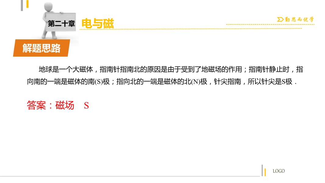 【内容简介】【中考突破】人教版2016年初中物理中考复习课件:《第20章 电与磁》ppt课件,课件共有33张幻灯片,引导学生认识本章的知识点:1.磁现象; 2.奥斯特实验、电生磁; 3.磁场对电流的作用; 4.法拉第实验、磁生电,通过填空引导学生回顾本章基础知识,课件的重点是按照考点重点突破,引用了2015年中考试题,通过试题的评析,总结解题思路,同时通过全方位突破,提高学生解题能力。